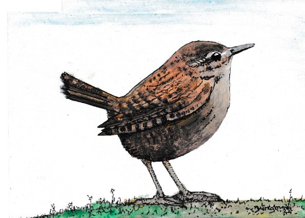 603 Aquarel op canvas.Winterkoningkje a. Afm. 21 x 15 cm.