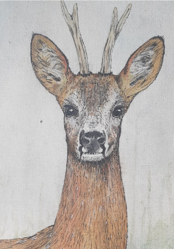 623 Aquarel op canvas.Reebok. Afm. 21 x 15 cm.