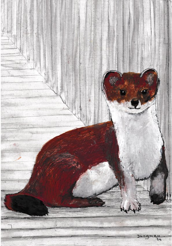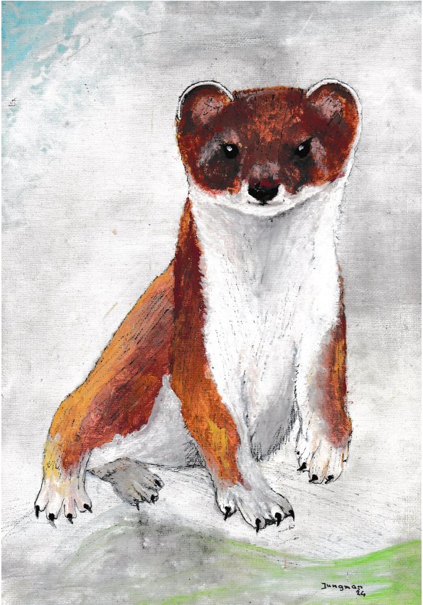 624 Aquarel op canvas.Hermelijn 1. Afm. 30 x 21 cm.